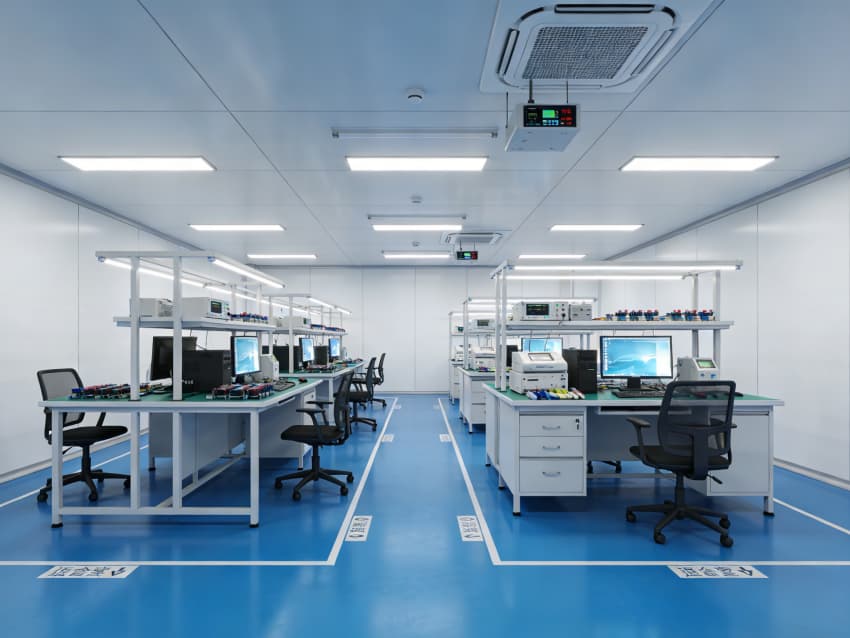 恒溫恒濕車間內(nèi)部采用藍(lán)色地面與白色墻壁的統(tǒng)一簡(jiǎn)約風(fēng)格,精準(zhǔn)適配高端制造對(duì)環(huán)境穩(wěn)定性的嚴(yán)苛需求,更融入全流程智能化管控體系。藍(lán)色地面選用耐磨抗靜電環(huán)氧材質(zhì),經(jīng)精密施工確保平整度,搭配無(wú)縫拼接工藝,便于清潔維護(hù)與智能設(shè)備移動(dòng)作業(yè);白色墻面采用高潔凈涂層,配合密封式設(shè)計(jì),減少環(huán)境干擾因素。